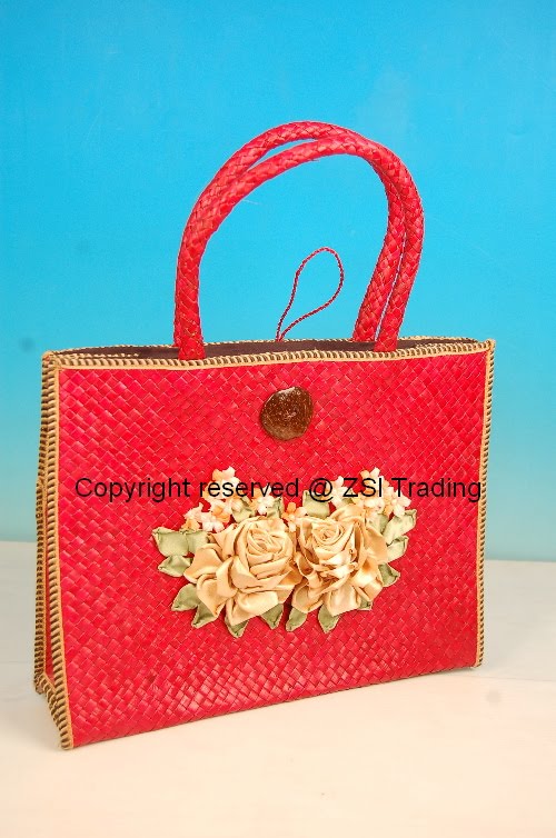 Hamiza...anak didik dan pembantu kedua saya...Bunga-bunga reben itu di jahit atas bag mengkuang yang dah siap...dan didalam bag ditutup dengan kain lining untuk menutup bahagian belakang jahitan.